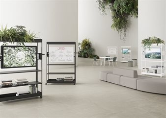 DV420-Mobile Wall è un carrello portamonitor,autoportante, su ruote con freno, progettatoper fungere anche come elemento divisoriodegli spazi. Rappresenta il simbolo del lavorarein modo flessibile, definendo nuovi layout,ottimizzando e riconfigurando gli spaziin luoghi di formazione o meeting room.